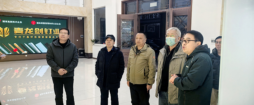 考察中,青龙剑总经理马群泽、厂长宁少峰介绍了企业发展情况。作为国家级高新技术企业、省级“专精特新”企业,其产品涵盖32个系列600多个规格,通过多项国际认证并远销海外。